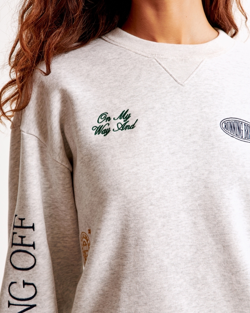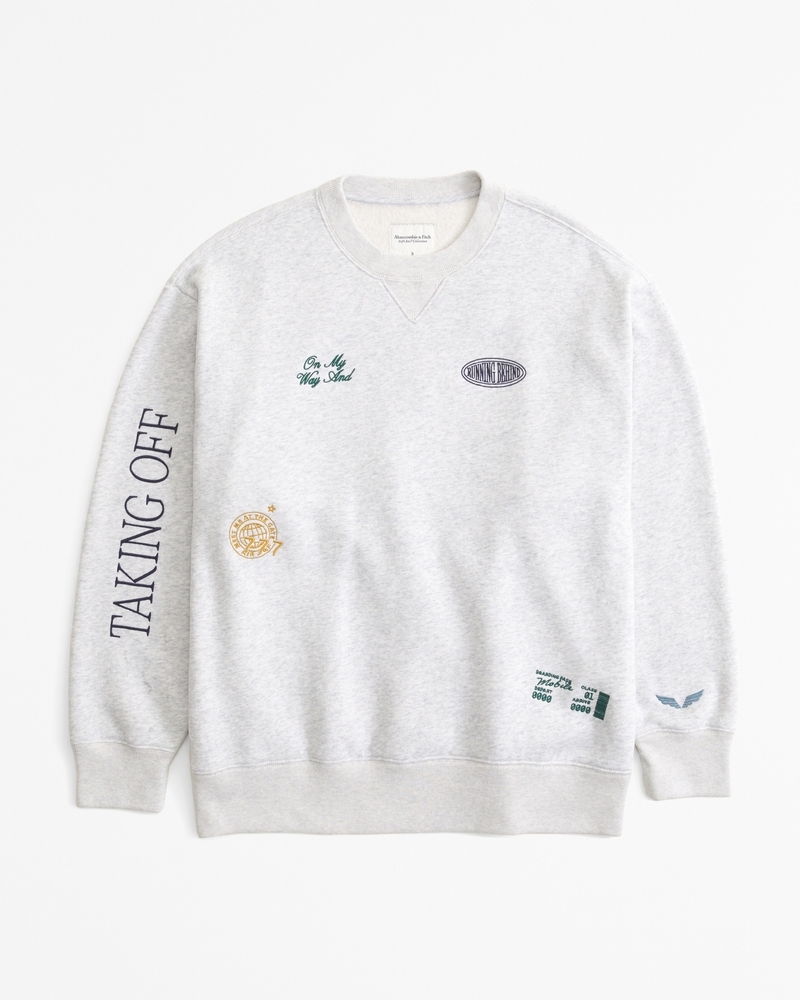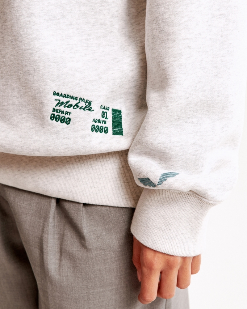 Comfy sweatshirt in our Soft A&F MAX heavyweight fabric and legging-friendly length, featuring a relaxed chest width, airplane travel-inspired graphic detail at chest, crew neckline and banded hem and cuffs. Imported.Store Item: 152-488-00271-112