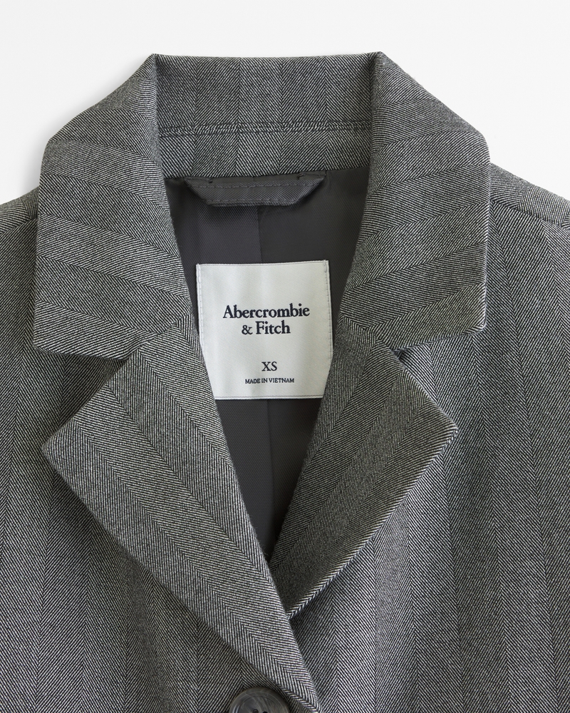 Our new single-breasted blazer in our everyday menswear fabric and flattering cropped silhouette, featuring center-button closure, front pockets, interior pocket and sleeve button details. Imported.Lining:100% Polyester / Shell:63% Polyester, 33% Viscose, 4% Elastane
