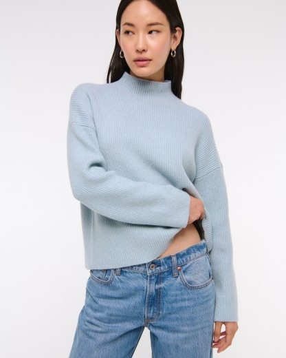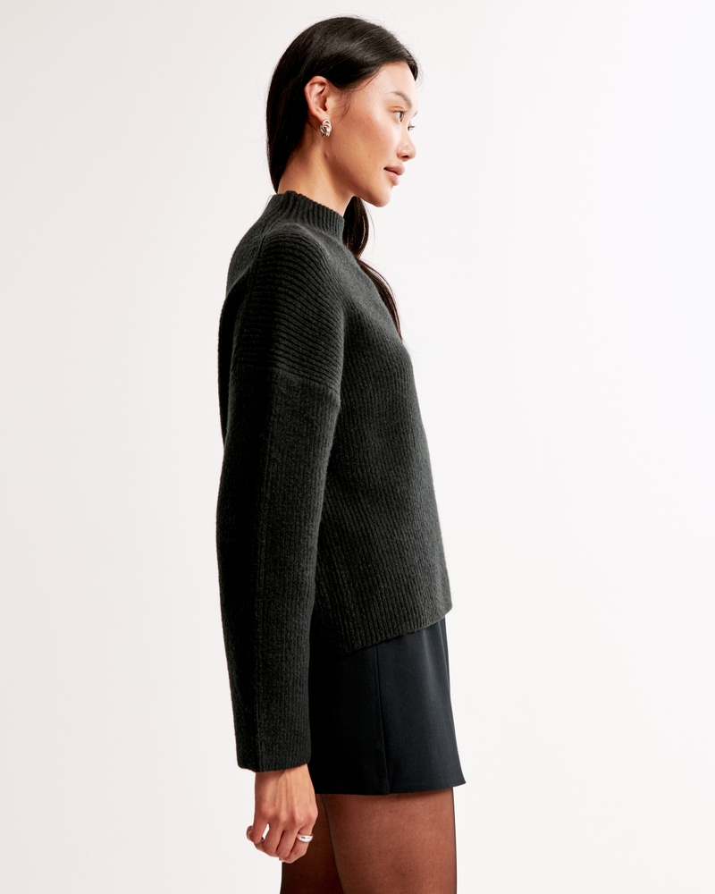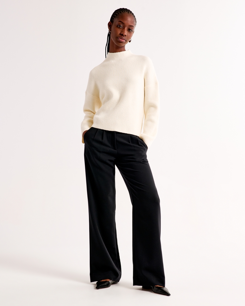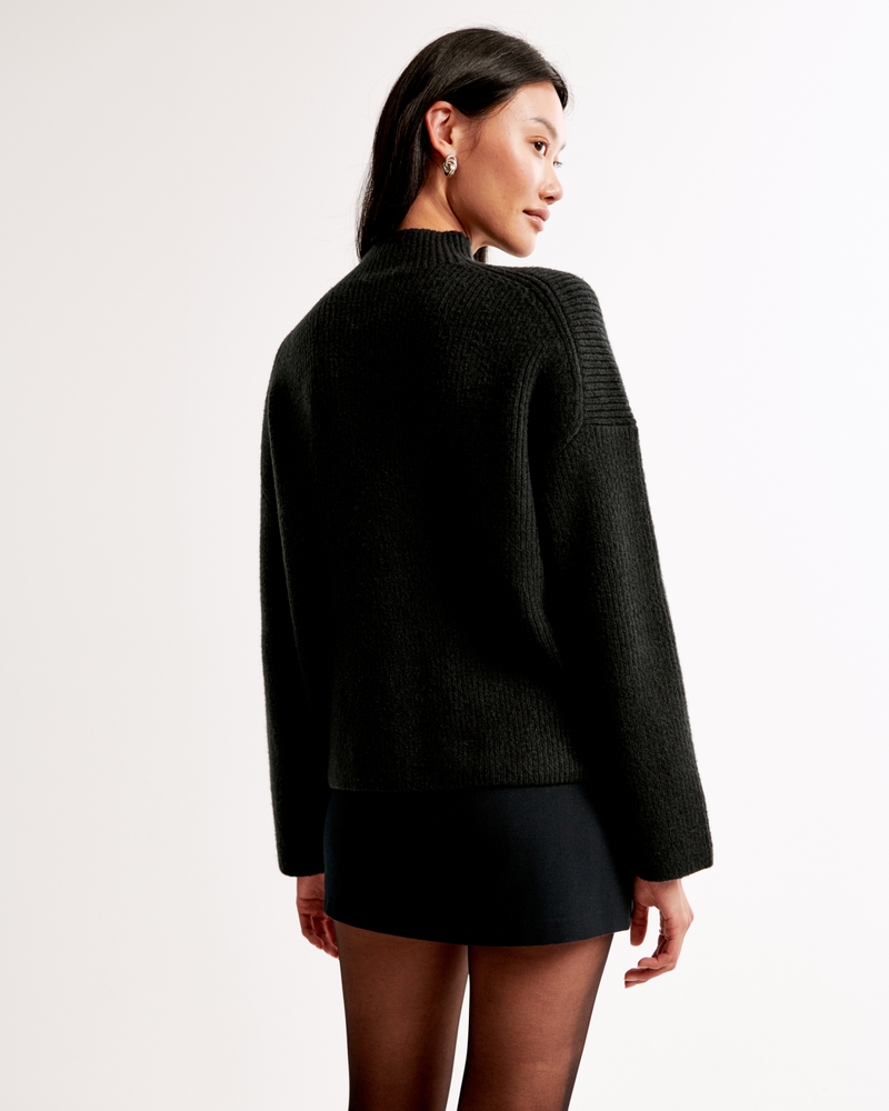 Easy-fitting sweater in our super soft yarn fabric, with wide sleeves and a mini funnel neckline. Pairs perfect with tailored bottoms! Imported.Body:51% Polyester, 36% Nylon, 7% Acrylic, 4% Wool, 2% Elastane