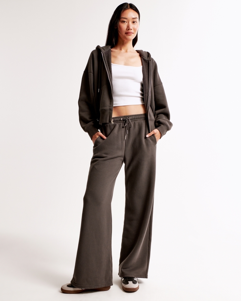 High rise wide leg sweatpants in our heavyweight Soft A&F Max fleece fabric, featuring our relaxed Sunday silhouette, an elasticated waistband, exterior drawcords with metal aglets and pockets. Imported.Body:70% Cotton, 30% Polyester / Pocket Bag:60% Cotton, 40% Polyester