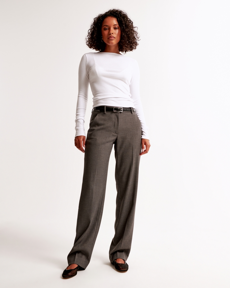 Low rise pants in our everyday menswear fabric, and an easy, straight fit, featuring functional pockets, belt loops and a fly closure for a secure fit. The body of this garment contains 66% recycled polyester. Imported.Body:66% Recycled Polyester, 32% Viscose, 2% Elastane / Pocket Bag:98% Polyester, 2% Elastane