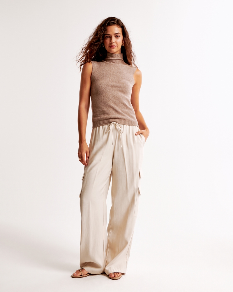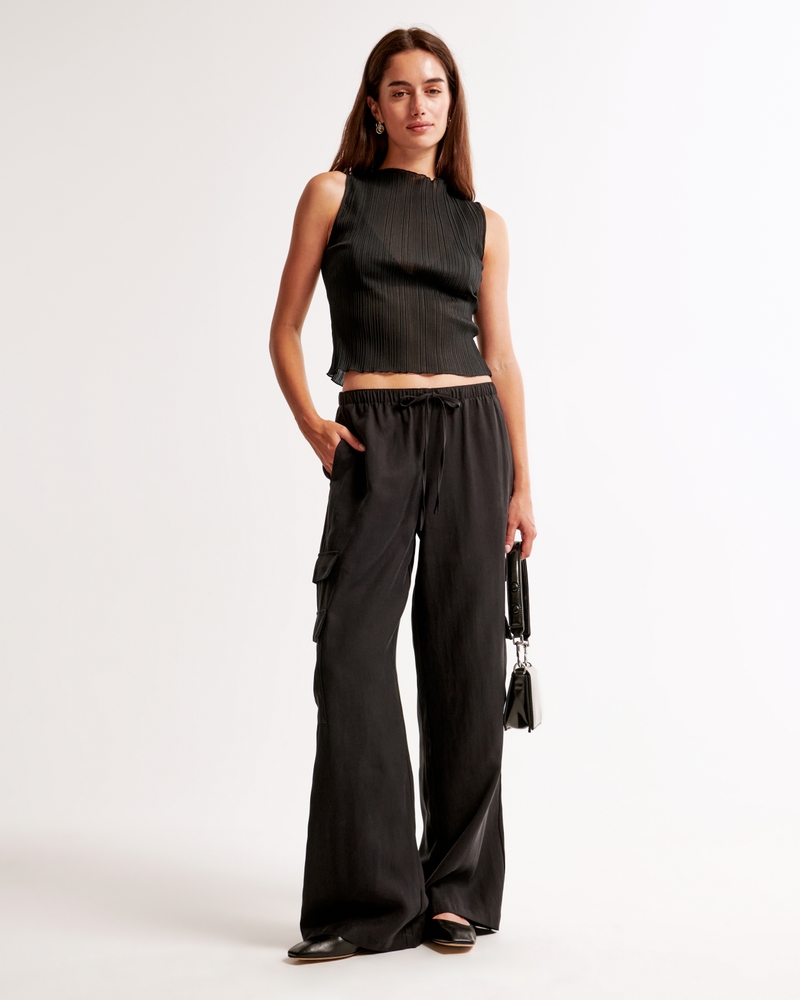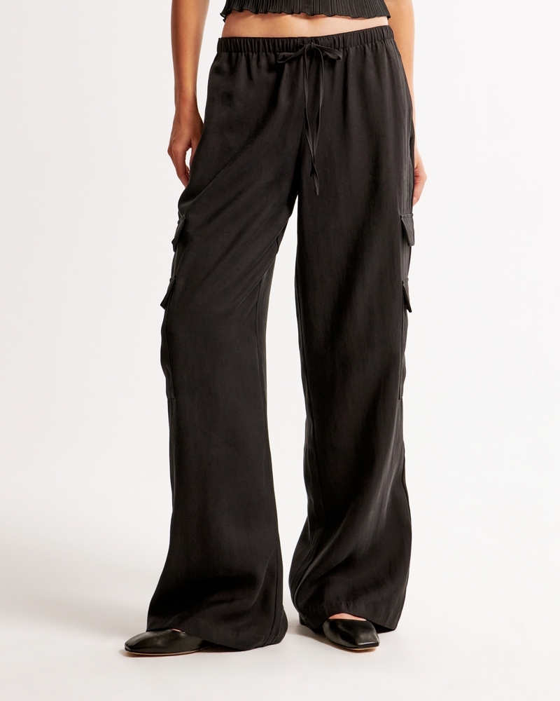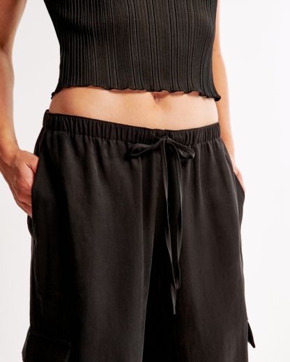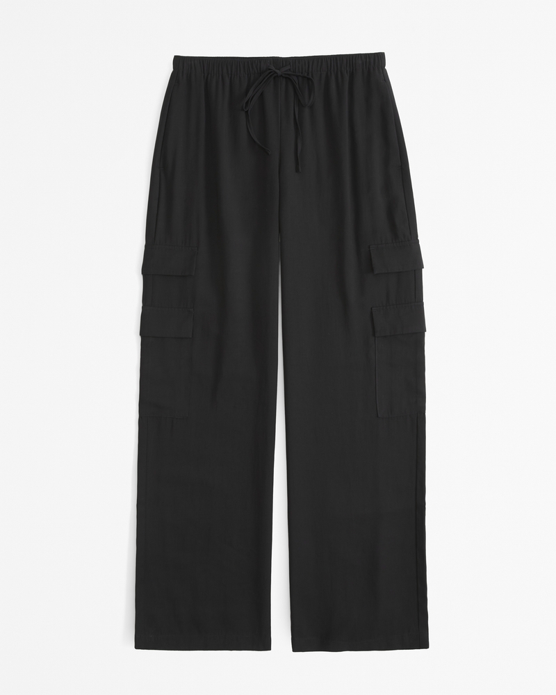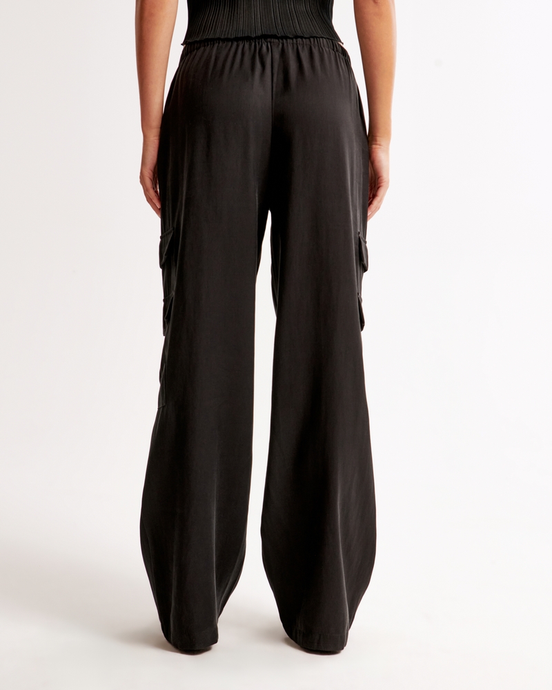 Mid rise, wide leg pants in a soft woven fabric, featuring a pull-on style elasticated waistband and functional pockets. Imported.Body:81% Viscose, 13% Polyester, 6% Nylon / Pocket Bag:98% Polyester, 2% Elastane