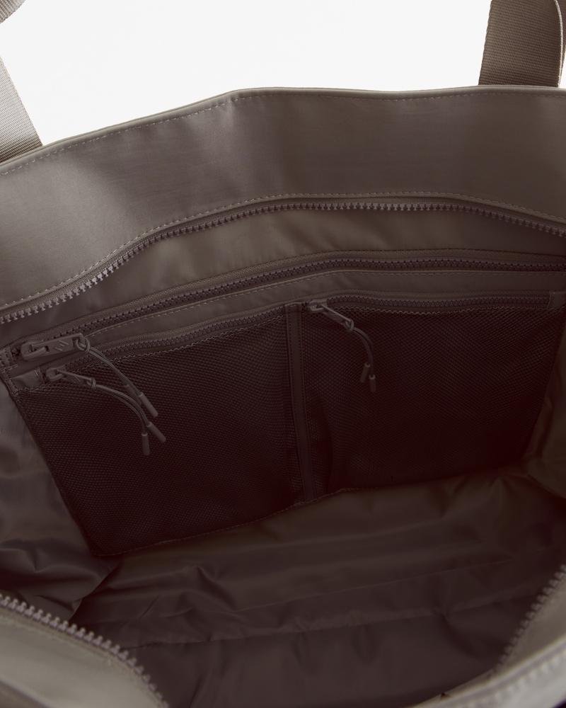 Our active tote bag with interior and exterior pockets throughout to hold your personal items and valuables. Includes top zipper closure, as well as a back trolley pass flap for easy use when traveling. Height: 15 in. Width: 5.5 in. Length: 18 in. Imported.Lining:100% Polyester / Mesh:100% Polyester / Shell:100% Nylon